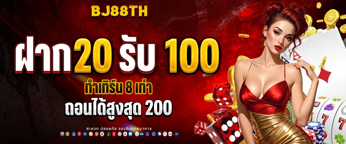 ฝาก 20 → รับเพิ่ม 80 = รวม 100 / ทำเทิร์น 8 เท่า / ถอนได้สูงสุด 200